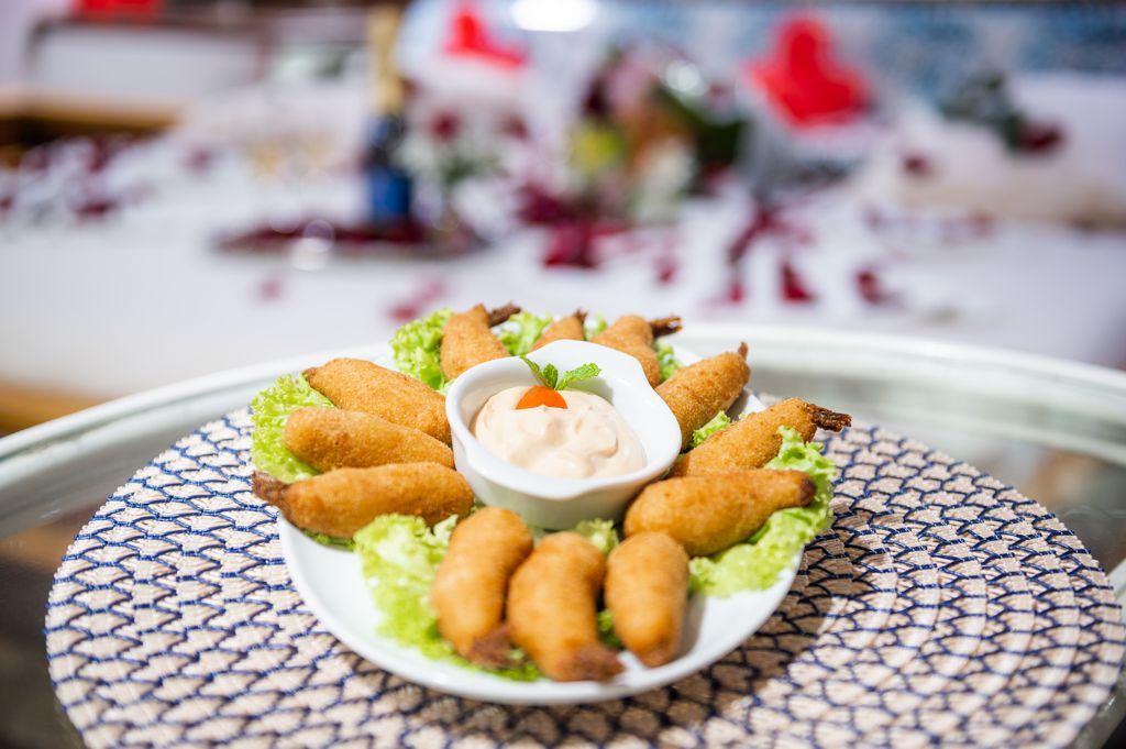 CAMARÃO, PURÊ DE BATATA, SALADA E ARROZ BRANCO